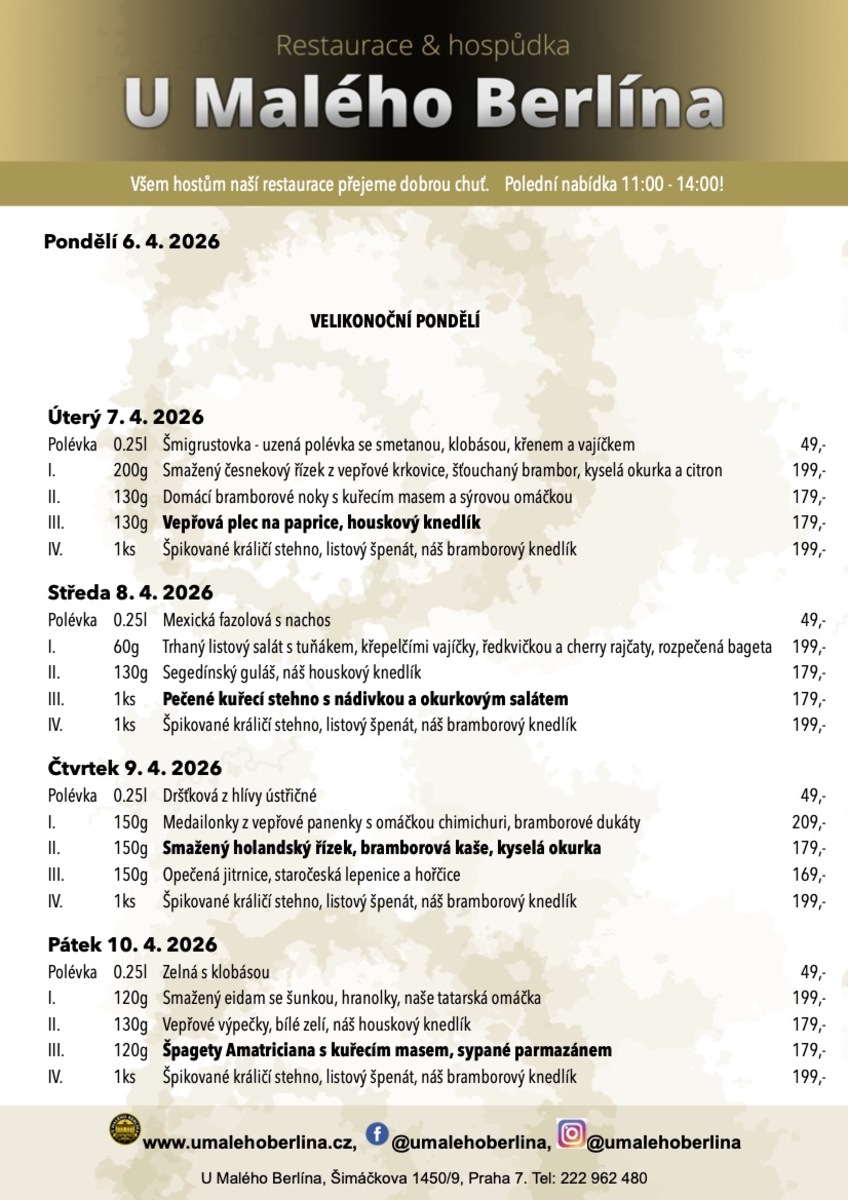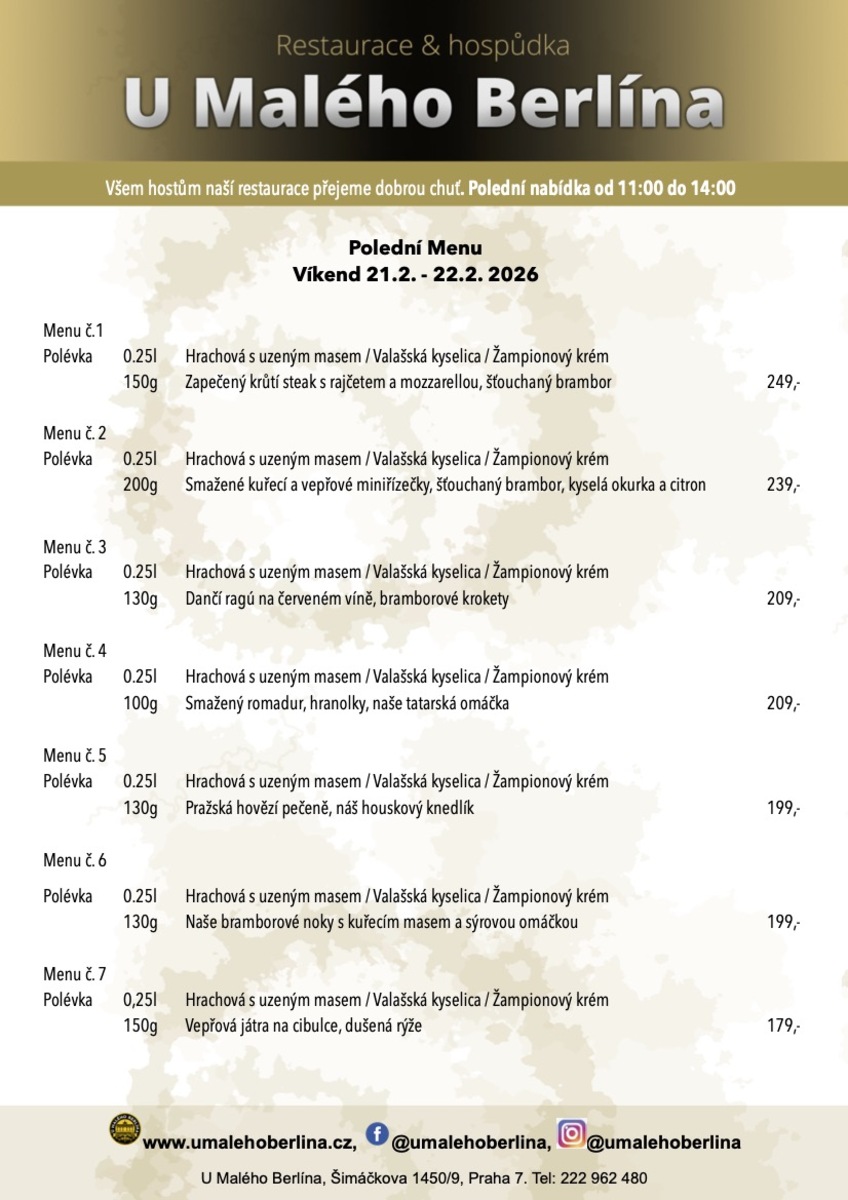 Polední nabídka platná každý den 11:00 - 14:00